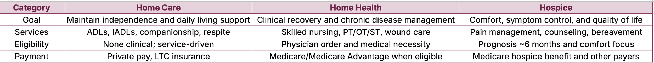 What Are the Key Differences Between Home Care, Home Health, and Hospice?